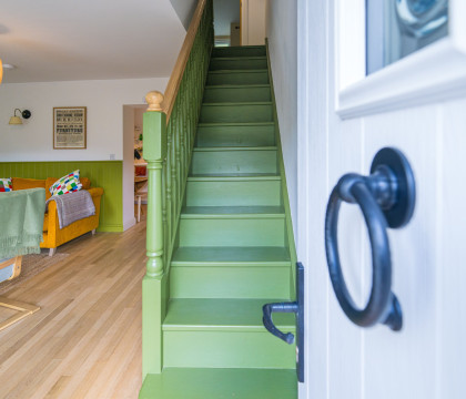 The owners have meticulously refurbished the cottage, creating a warm and inviting atmosphere. Inside, expect a blend of traditional features and modern design, enhanced by a great use of colour and local artwork. The comfortable lounge features a cosy log burner, a deep-cushioned sofa, and two easy chairs – perfect for relaxing while still admiring the views from the window. The modern kitchen is thoughtfully laid out with an electric oven, induction hob, washer, dryer, microwave, kettle, toaster, and a small dining table (please note: no dishwasher). Upstairs, the double bedroom at the front of the house offers the most magnificent views across the valley, and the bathroom includes a good-sized bath with an overhead shower and a heated towel rail.