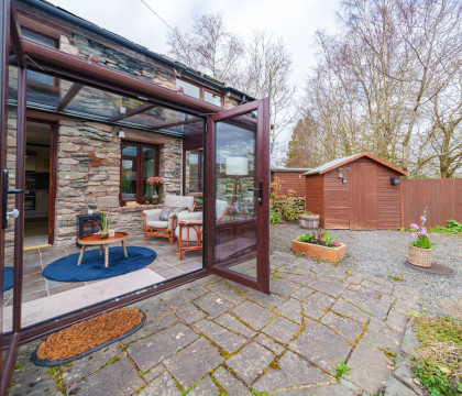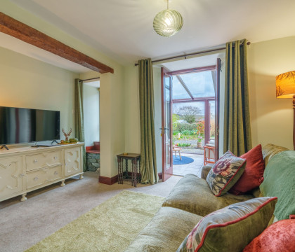 Off the living area is the double-glazed conservatory, with sofa seating, armchairs and an electric fire for the chillier months. This is a wonderful relaxing space with a good book or an afternoon nap. On the warmer days, open the French doors onto the garden!