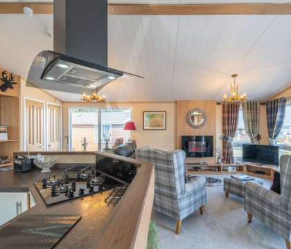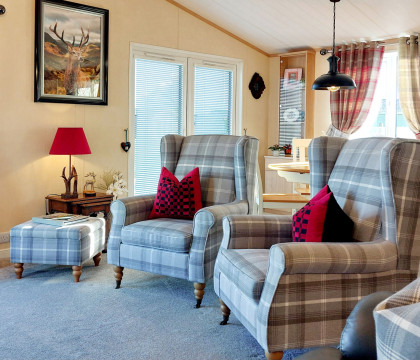 The well-equipped kitchen, comprising an air fryer, electric oven and hob fitted into the kitchen island, is perfect for cooking a family meal at the dining table. Since you're on holiday, nobody wants to do the dishes- right? Worry not; the dishwasher is at hand! The living area is fantastically comfy with armchairs and a sofa nestled in front of the electric fire and the Freeview TV, which is internet enabled so you can stream your favourite programs, but you will need your own account to access these services.