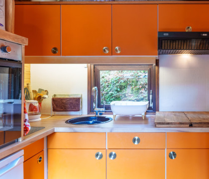 Step inside the inviting living area, where comfortable sofas and a 40” Smart TV await. Patio doors open out to the woodland, framing leafy views through the trees towards the valley beyond. The brand-new, contemporary kitchen has been expertly designed with quality appliances and ample workspace, making self-catering a pleasure.