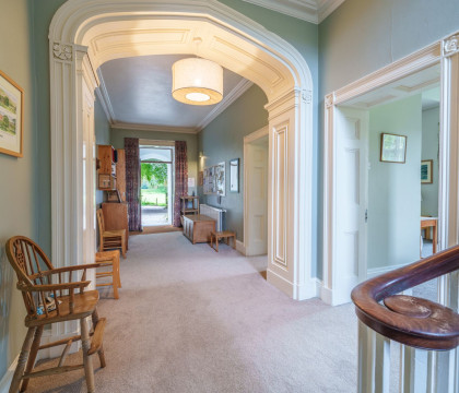 The ground floor is the social hub, spanning two floors. It comprises a spacious living room with an open fire and cosy sofa seating, a sitting room with a large wall-mounted TV, and the kitchen (our favourite room) with a solid 16-place oak dining table in the centre, perfect for family meals. Modern kitchen appliances, such as the large range cooker, will make catering for everyone a breeze, and cleaning up afterwards will be a doddle thanks to the two dishwashers. The kitchen has plenty of crockery, pots, pans etc. Take a look at the inventory here.
