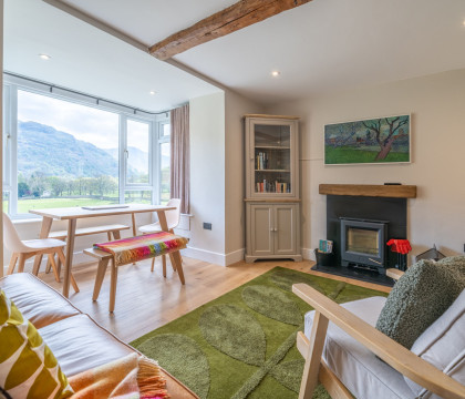 Arranged all on level, Brookside has a simple layout with an open plan kitchen / lounge / dining area, two smart and cosy bedrooms (one double and one twin) and the house bathroom. An eco-friendly air source heat pump keeps the house nice and warm at a steady temperature, but you can of course also enjoy the lovely ambience of a real fire in the logburner.