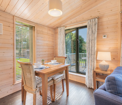 Step inside Dene Lodge and discover a thoughtfully appointed space where comfort meets elegance. The open-plan living area, with its French doors and full-length windows, seamlessly blends indoor and outdoor living, inviting the stunning scenery inside. Unwind on the plush sofa, enjoy a meal at the intimate dining table, or prepare a culinary delight in the fully equipped kitchen. Every detail has been considered to ensure your stay is as effortless as it is memorable, allowing you to simply relax and reconnect.