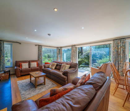Goldrill Cottage is a fabulous four-bedroom house that accommodates up to 9 guests. It is situated within 5 acres of private, natural woodland and grassed gardens, flanked to one side by Goldrill Beck that forms a natural wetland teeming with birdlife and wildlife, including red deer, squirrels, badgers, otters and the badgers who visit at night to feed by the patio door!