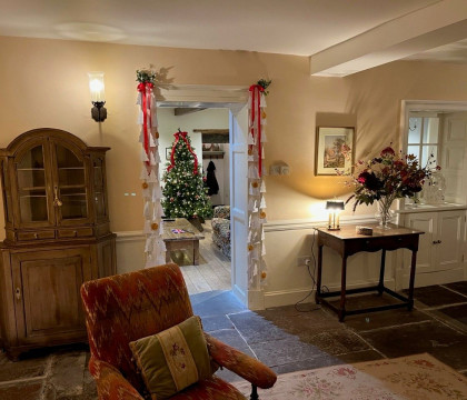 The ground floor is exceptionally spacious with two lounge areas, a snug, kitchen/dining area, boot and utility room (an ideal retreat for dogs), and handy WC. Two logburners provide a wonderfully inviting and cosy feel (starter supplies of wood provided) and the beautiful decor makes you feel you have come to somewhere pretty special. Any combination of family or all adult groups can easily find space to be together sociably, or break-off into two or three groups and have their own space to enjoy. Pause awhile to enjoy the view over the garden from the window seat halfway up the stairs before reaching the first of the five bedrooms and three bathroom facilities - the high quality continues in each of the elegant bedrooms - three kingsize, a dual-aspect twin room, and one single room with a small double (4ft) bed. There is a lovely family bathroom with clawfoot bath and separate shower, and there are two further shower rooms on this level.