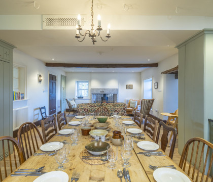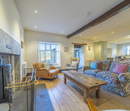 The ground floor is exceptionally spacious with two lounge areas, a snug, kitchen/dining area, boot and utility room (an ideal retreat for dogs), and handy WC. Two logburners provide a wonderfully inviting and cosy feel (starter supplies of wood provided) and the beautiful decor makes you feel you have come to somewhere pretty special. Any combination of family or all adult groups can easily find space to be together sociably, or break-off into two or three groups and have their own space to enjoy. Pause awhile to enjoy the view over the garden from the window seat halfway up the stairs before reaching the first of the five bedrooms and three bathroom facilities - the high quality continues in each of the elegant bedrooms - three kingsize, a dual-aspect twin room, and one single room with a small double (4ft) bed. There is a lovely family bathroom with clawfoot bath and separate shower, and there are two further shower rooms on this level.