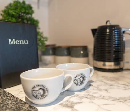 While mentioning the Bristly Hog Coffee Shop downstairs, we highly recommend visiting, whether for a coffee or something to eat. They offer a superb full breakfast menu Monday to Saturday, 9:00 - 16:30, as well as a number of other dishes! For evening meals, try one of the many restaurants in the Town.
