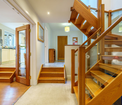 Margaret House has four spacious bedrooms on the first floor, accessed via the floating staircase. Both double bedrooms benefit from en-suite shower rooms, and the house bathroom comprises a bath, separate shower, toilet, and basin. All the bathrooms have heated towel rails.