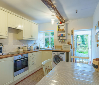 Outside is the lovely garden, with garden furniture, enclosed by a fence to keep your dog safe. A private off-street parking space is located around the corner of the cottage, and cars can also park on the lane if required. Handy EV charger.
